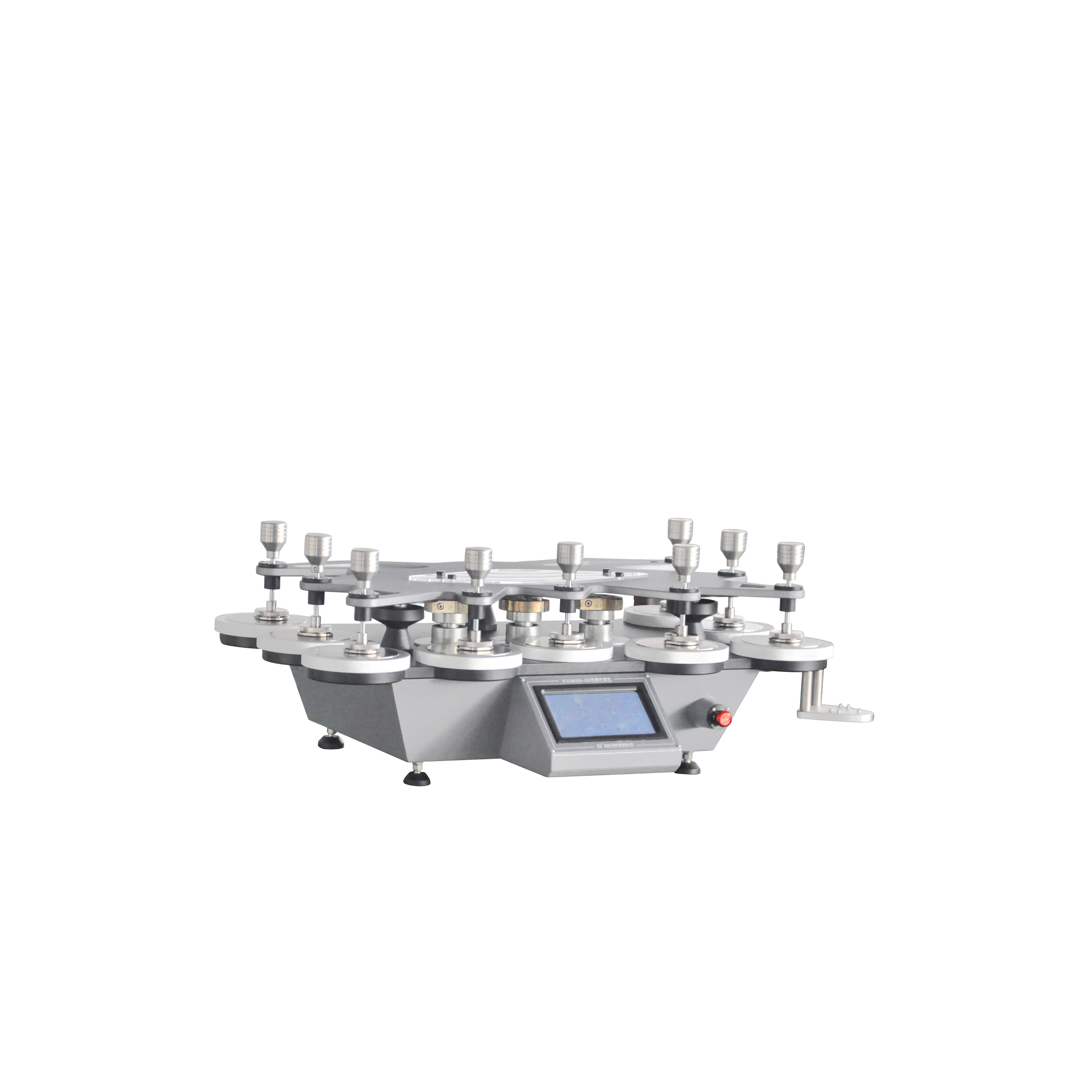 72 YG401F織物平磨儀(九工位) GB/T4802.2-2008,GB/T13775,GB/T21196.1,GB/T21196.2,GB/T21196.3,GB/T21196.4;FZ/T20020;ISO12945.2、12947;ASTM D 4966、4970、IWS TM112,可以增加球盤法測(cè)試功能(選配)等標(biāo)準(zhǔn)。