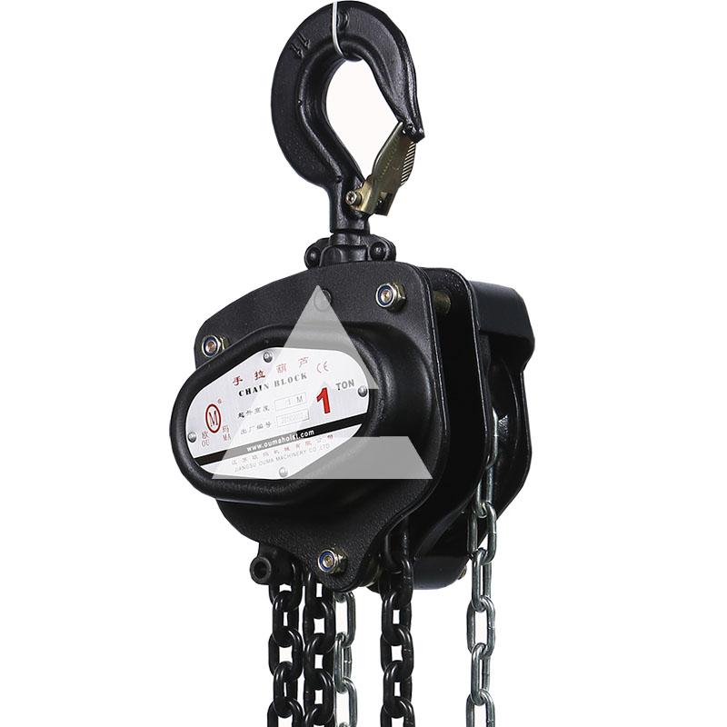 4.在起吊貨物的過程中如果需要暫時(shí)將重物懸停,需要將手拉鏈拴在起重鏈上。如果需要長(zhǎng)時(shí)間的停留,需要在貨物下面墊上木墩,以防自鎖設(shè)備失靈造成事故;